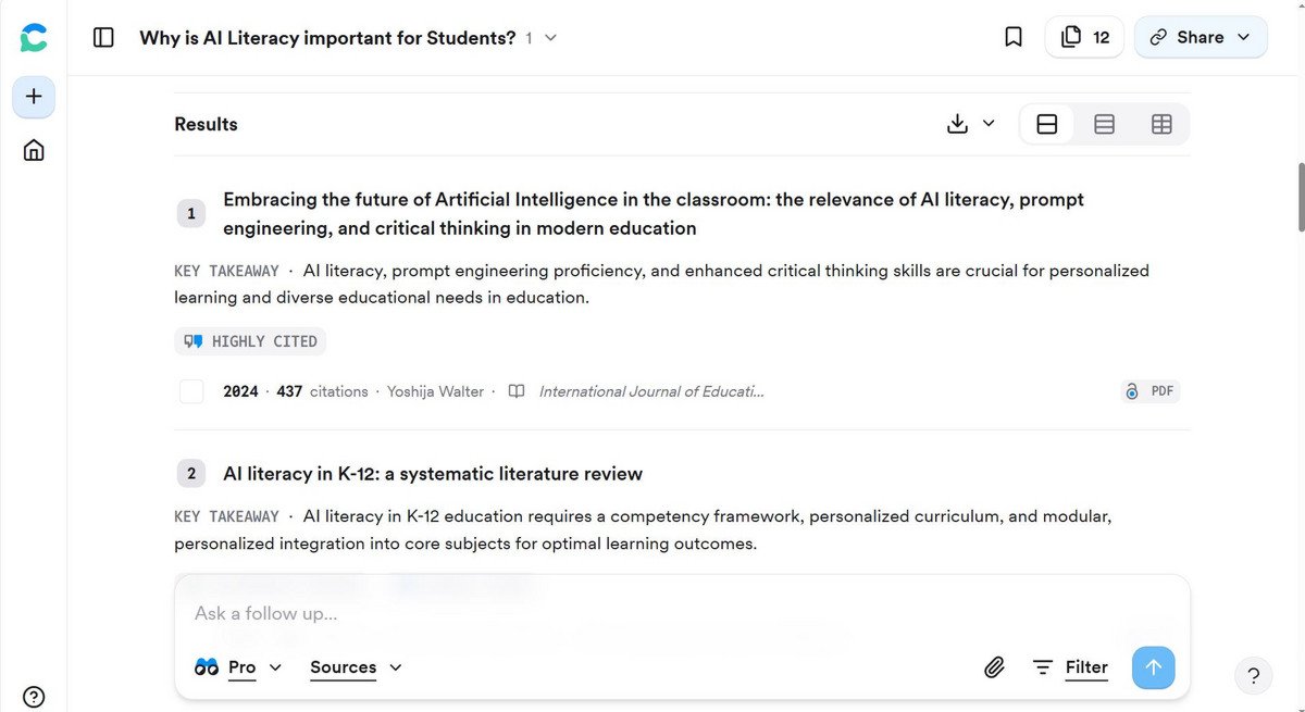 Zudem sollte man die Nützlichkeit von manchen Zusatzfunktionen kritisch hinterfragen: Spielerische Features wie das Consensus Meter (zeigt auf Ja/Nein-Fragen die Bewertung durch die ca. 20 relevantesten Publikationen an) oder ‚Deep-Research‘-Funktionen können zwar einen schnellen ersten Überblick liefern, sind zumeist aber kostenpflichtig, auf OA-Artikel beschränkt, basieren auf intrasparenten Ranking-Methoden, und/oder liefern unvollständige bzw. verzerrte Zusammenfassung. Vor allem bei komplexen Fragestellungen können solche automatisierten Ergebnisse zu Fehlinterpretationen führen.